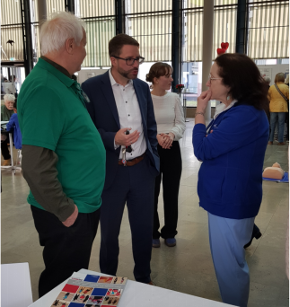 Die Herzsportgruppe Gelnhausen e.V. hat sich auch in diesem Jahr wieder mit einem Informationsstand am Tag der Herzgesundheit (6. 11.) im Main-Kinizig-Forum Gelnhausen beteiligt. Die zahlreichen Interessenten wurden von Aktiven, Vorstandsmitgliedern, Übungsleiterinnen und einer betreuenden Ärztin über Leistungen und Aktivitäten des Rehasportvereins unterrichtet. Auch Landrat Thorsten Stolz stattete den Herzsportlern einen Besuch ab (auf dem Foto mit der betreuenden Ärztin Dr. Marie-Ev Horbach und dem 1.Vorsitzenden Klaus Schmidt).